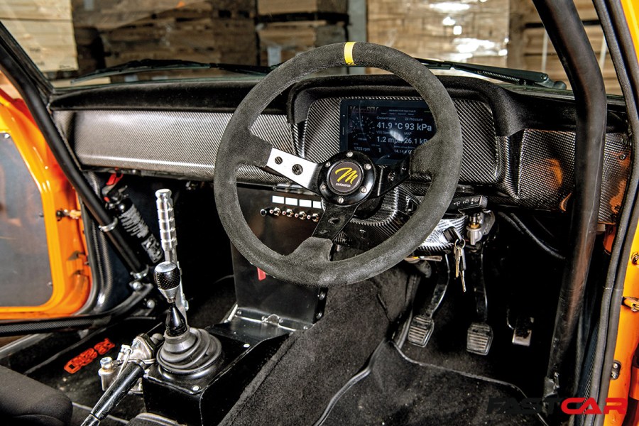 “I went for Link MonsoonX engine management with an onboard Windows 10 PC linked to the ECU with a 7” touchscreen,” says Mark. “This ensures I can keep an eye on how the car is performing and make any changes as necessary.” A new uprated engine loom and custom vehicle wiring loom were found to be necessary, and to satisfy ample fuelling he’s opted to fit a Premier Fuel System carbon bag tank with twin Bosch 200 pumps.