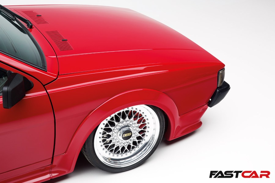 A good friend who worked at a Lexus dealership painted the car to a very high standard and Wayne built the car up around some 7.5×13 RS-style wheels, which meant he had to narrow the axle by 40mm each side to accommodate them.