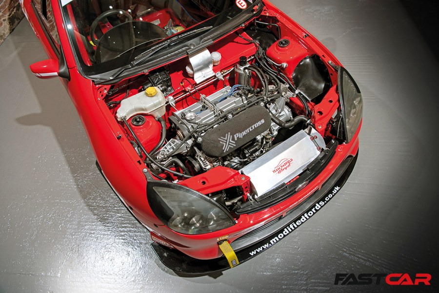 This was August 2019, and by Christmas the engine was physically in the car. A friend, James Irons, was drafted in to make the custom intake parts as welding is his speciality, and Craig then spent the next few months figuring out the wiring, working out which bits to keep and what he could lose from the Fiesta ST looms. By March 2020 it was running, as a sort of cobbled-together test-bed so that everything could be checked and refined before final installation. At this point, he was able to crack on with solving the various challenges presented by the chassis and the interior, before sending the car back to James for a bespoke exhaust system.