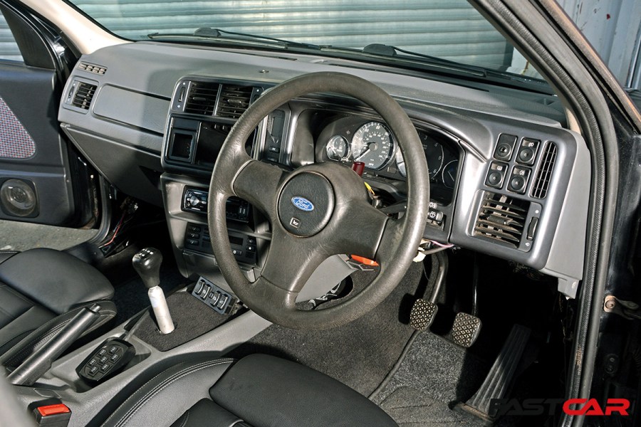 Meanwhile the existing Cosworth YB required a freshen-up which resulted in Mark tackling a rebuild of the head and bottom end. With such an aggressive exterior look, he was never going to settle for the modest factory specification here either, and the engine now boasts pocketed pistons, BD10 cams, a Group A head gasket, Bosch 550cc injectors, vernier pulleys and a high-pressure oil pump. Coupled with a Garrett T34.63 turbo running 27psi of boost, and mapped by none other than Cosworth gurus NMS, this equates to a highly potent 380bhp.