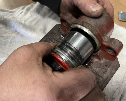 Now it’s over to the bench to start the strip down and rebuild. First thing to do is remove the outer seal. Simply prize it away with a flat-blade screwdriver or small pick.