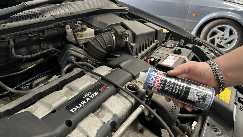 That gave us the perfect opportunity to complete a full engine flush using Liqui Moly’s Pro-Line Engine Flush. Simply pour it into the engine with the old oil still in place, and let it run for 10-15 minutes. The product then gets to work, cleaning the inside of the engine. Liqui Moly says it breaks down and removes deposits from the oil galleries, bearings, and even piston rings. These deposits are then suspended in the old oil, and simply drain out when you remove the oil.