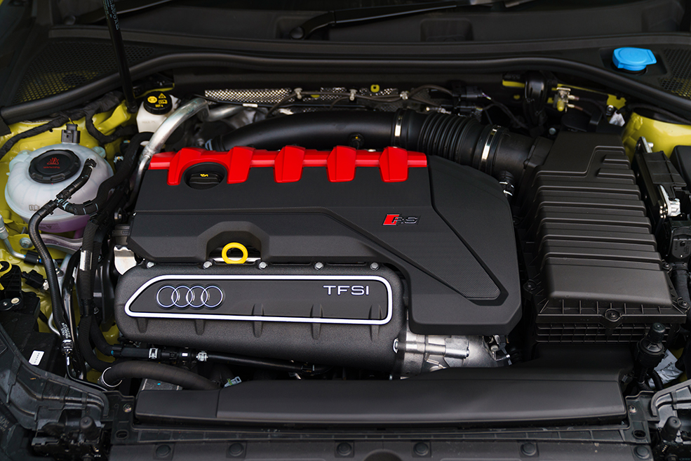 Let’s start with the figures. Under the bonnet is that fantastic 2.5-litre, turbocharged five-cylinder engine that we’ve seen in several Audis over the years; and in the 2022 Audi RS3, it produces the same 394bhp and 369lb ft of torque as the outgoing model at. As you’d expect, that power is sent to all four wheels via Audi’s quattro system, only in the new RS3 you get a couple of clutches on the rear axle that can split the torque 50-50 to either of the rear wheels.