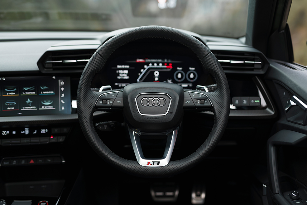 With umpteen drive modes, damping settings and steering input levels, you can completely customise your driving experience in the Audi RS3. At first it seems a little daunting, but in truth, fine tune it to your driving style and you’ll have a much better car on your hands than if you were to rely on simply one drive mode. In fact, the new Audi RS3 is so finely damped that over a b-road of typical British nature, you glide over bumps, offering confidence to push on. It eats up bumps without a hiccup through the steering wheel, allowing you to place the car across a bumpy road with ease. Harsh, sudden bumps don’t upset the wheel either. It’s a remarkable set up that once coupled with the orchestral brilliance of that five-pot engine will make you lose track of time on any drive.