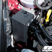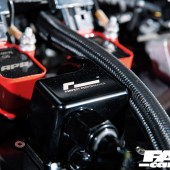 Plans for track use mean caution has been dialled in throughout the tuned Mk7 Golf GTI build. Although Clubsport models benefitted from the GTI TCR’s racecar’s development programme, Volkswagen stopped short of fitting its oil management system. RacingLine offers an aftermarket equivalent; a baffled catch can with a breather plate that stops oil pooling at the front of the engine under heavy braking, which can cause starvation issues and vapours getting into the cylinders. Chris also opted to upgrade both fuel pumps, as there’s really no room for error when you’re pushing the limits of factory internals.