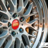 Originally, Alex was running a set of VMR VB3 wheels, followed by Work Meister S1s and was about to send off a set of BBS RSIIs to be customised before he changed his mind, realising they weren’t what he really wanted and so he decided to spring for something he really did. “I wanted something special that not many others had that also wasn’t readily available. I decided to go with custom three-piece wheels built to my specifications,” says Alex and the BBS RSs he opted for look stunning. The eagle-eyed among you might well have spotted that these are actually 744/5s, aka Style 42s, a two-piece wheel found on various mid-’90s BMs, but Alex has had them turned into three-piece splits, with brushed silver centres and polished stepped lips. They look absolutely awesome, a truly unique set of wheels and they suit the whole look of this E92 perfectly, while the fitment allows them to just tuck under the arches, delivering that awesome stance. Red BBS centre caps and gold hardware add some flair while the stud kit and neo chrome wheel nuts deliver the perfect finishing touches, and the wheels are mounted over F80 M3 Brembo calipers that have been powder coated gold.